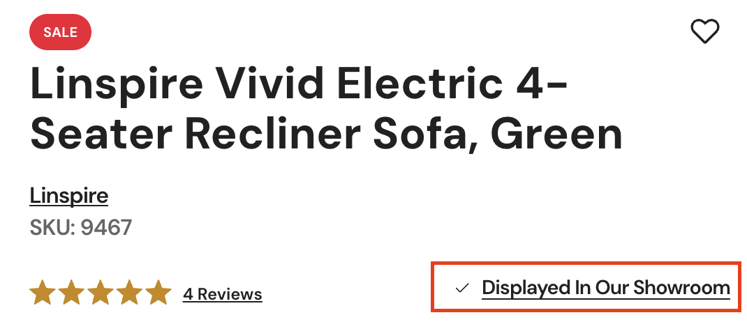 We also have a filter on the website that identifies products currently on display in our showroom. This appears as the filter “View in the showroom” on collection pages and as the label “Displayed in our showroom” on the product page.